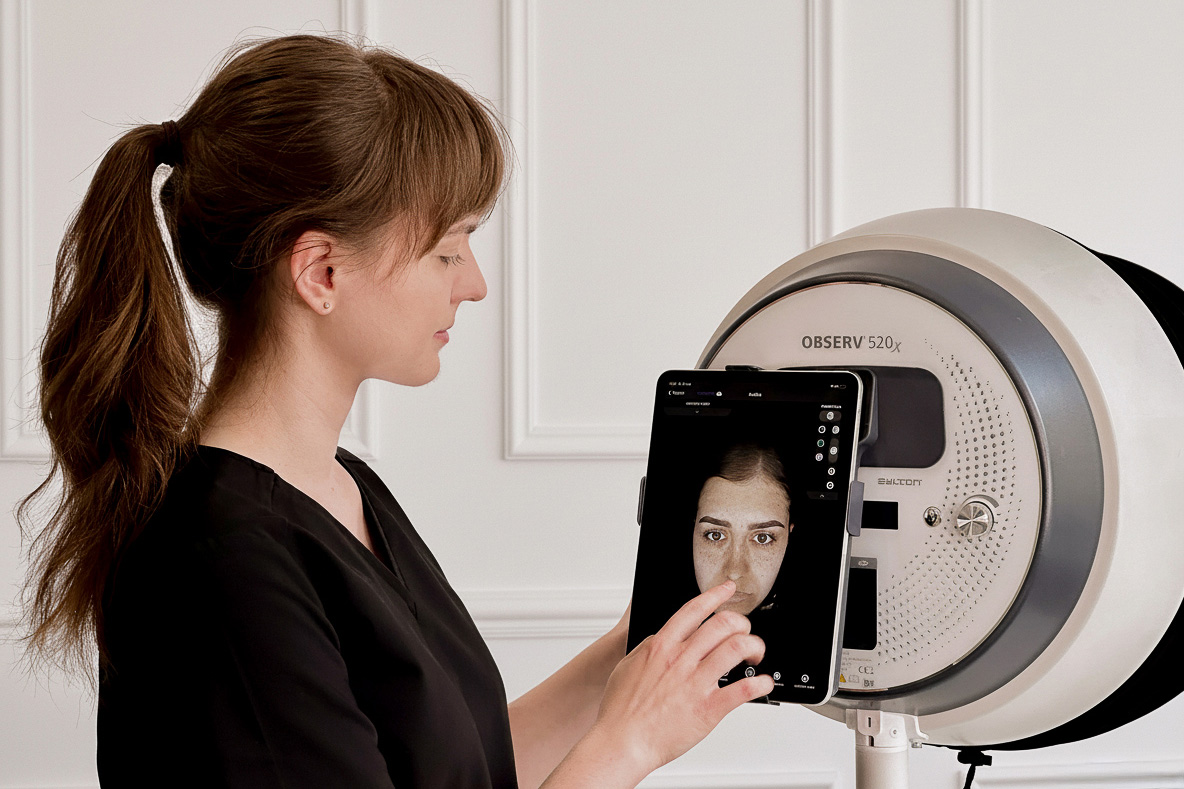 Rekomendujemy, aby zabiegi z zakresu kosmetologii poprzedzić konsultacją zawierającą w sobie cyfrową analizę skóry innowacyjnym urządzeniem Observ520x, które za pomocą różnych trybów takich jak: dzienny, lampa Wooda, lampa UV czy światło spolaryzowane pomoże określić:
