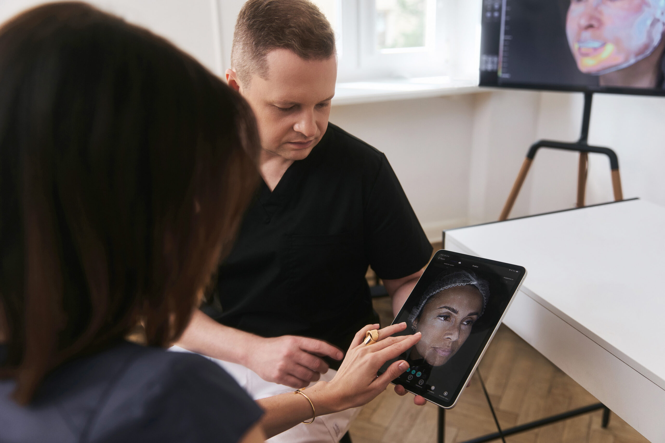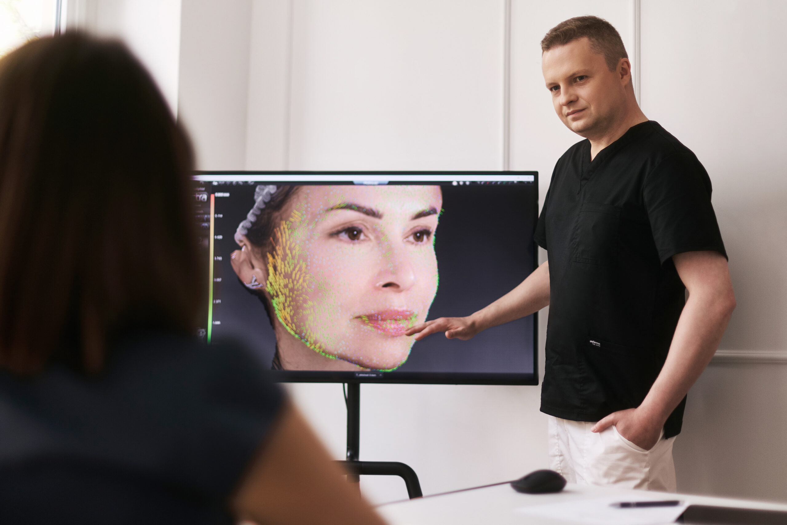 Wykonamy dokładne badanie Twojej skóry twarzy, korzystając ze specjalistycznych urządzeń oraz technologii cyfrowej. Dzięki temu ocenimy każdy detal: zmarszczki, pory, przebarwienia, naczynka, napięcie i proporcje twarzy. Trójwymiarowa analiza pozwoli Ci zobaczyć, co wymaga poprawy, a także wizualizować efekty, do których wspólnie dążymy. Dzięki temu masz pełną jasność, wiesz, o czym rozmawiamy i możesz być pewna, że nasze ustalenia są spójne z Twoimi oczekiwaniami.
